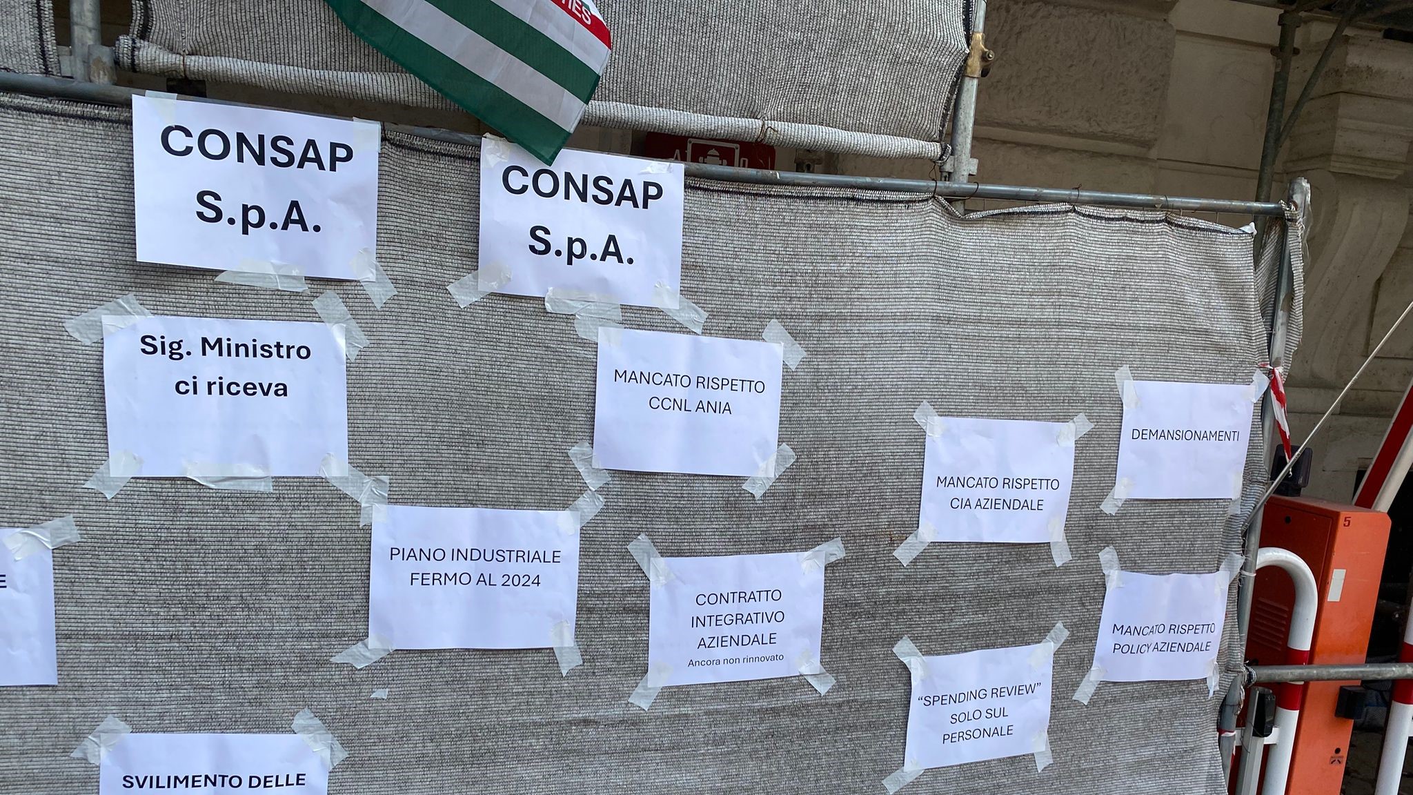 Lo scorso 20 marzo, a Roma, le lavoratrici ed i lavoratori di Consap hanno nuovamente manifestato, davanti al Ministero dell’economia e delle finanze, lamentando la chiusura che l’azienda, il ministro e il ministero continuano ad avere nei confronti dei diritti dei lavoratori.