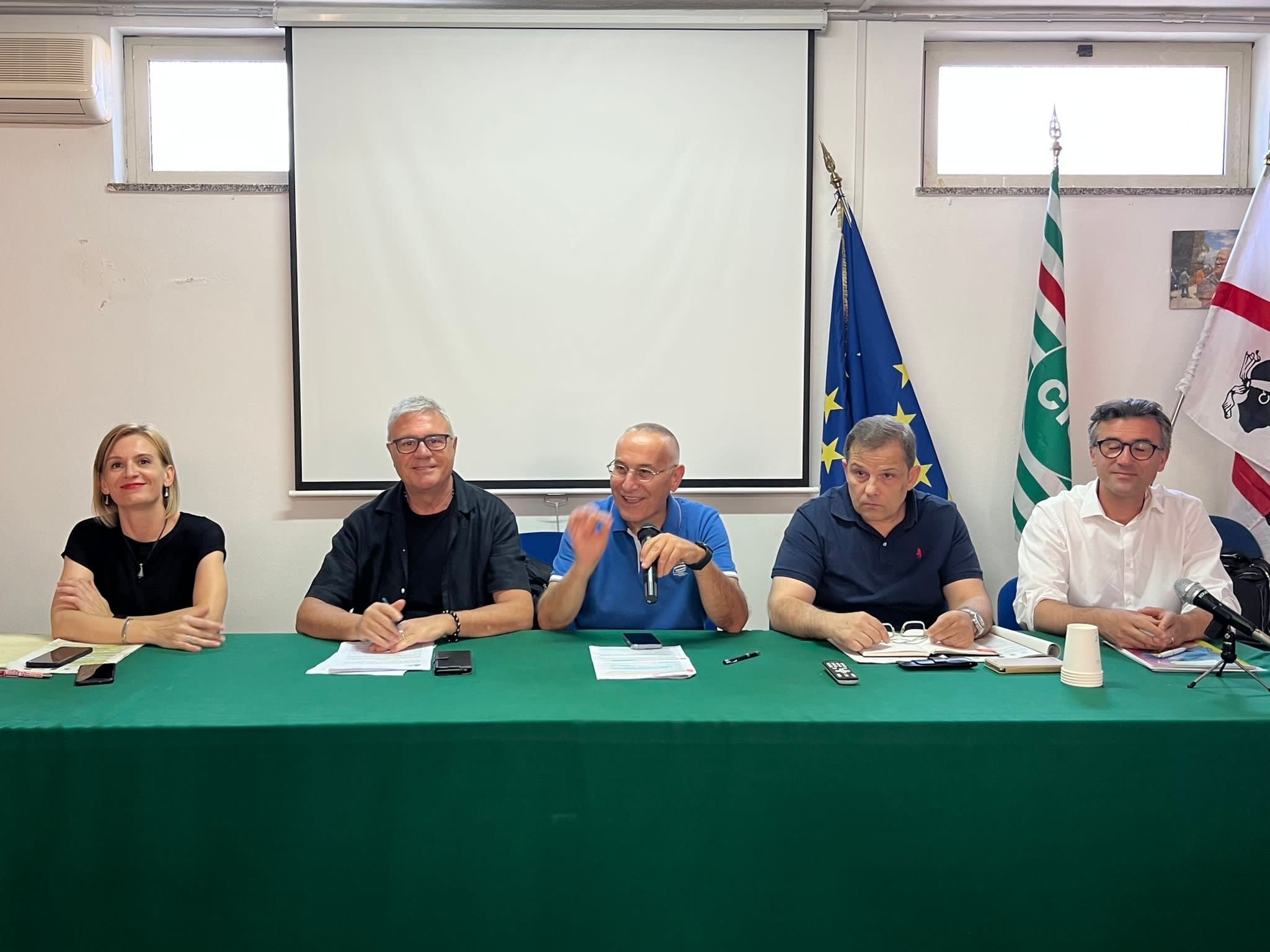Federica Carta (Fisac Cgil), Mauro Farigu (Uilca Uil), Sergio Mura (First Cisl), Tore Daga (Unisin) ed Emanuele Cabboi (Fabi).