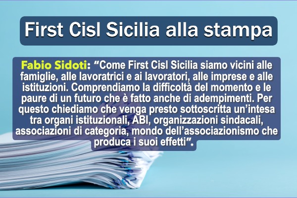 “Come First Cisl Sicilia siamo vicini alle famiglie, alle lavoratrici e ai lavoratori, alle imprese e alle istituzioni. Comprendiamo la difficoltà del momento e le paure di un futuro che è fatto anche di adempimenti. Per questo chiediamo che venga al più presto sottoscritta un’intesa tra organi istituzionali, ABI, organizzazioni sindacali, associazioni di categoria, mondo dell’associazionismo che produca i suoi effetti. Alcuni istituti di credito sono già intervenuti comunicando la sospensione delle rate di mutui e finanziamenti ma chiediamo che la misura si estenda a tutto il mondo del credito e a quello assicurativo, attivo in Sicilia attraverso le prestazioni di colleghe e colleghi che non mancheranno di assicurare fattiva collaborazione”.