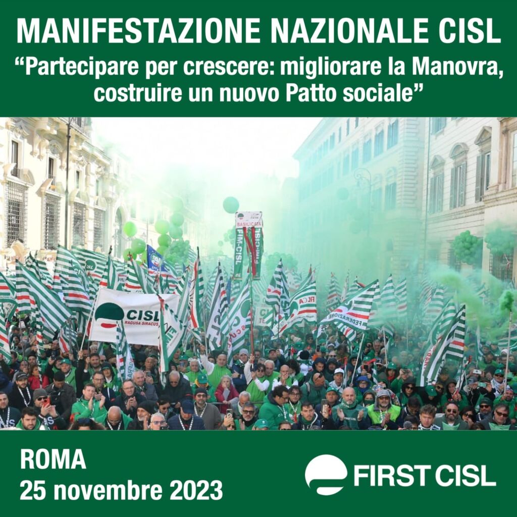La manifestazione nazionale è stata indetta dalla Cisl per chiedere a Governo e Parlamento di correggere e migliorare la legge di bilancio e oggi, in coincidenza con la Giornata Internazionale per l ’eliminazione della violenza contro le donne, insieme alle delegazioni di tutte le regioni italiane e delle diverse categorie che stanno manifestando con il nastro rosso al braccio e sulle bandiere, anche per dire “No” alla violenza contro