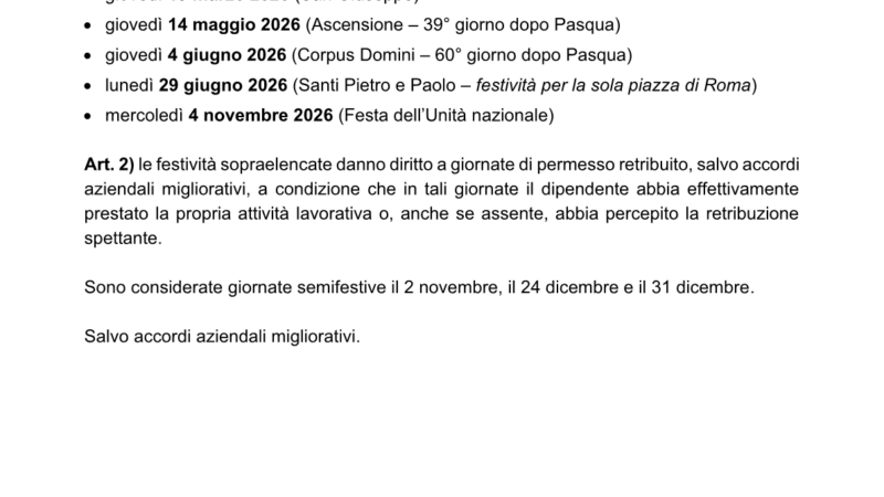 • 2026 Permessi ex Festività settore Credito Cooperativo