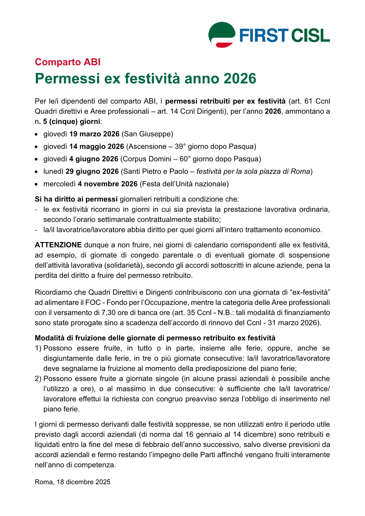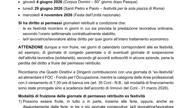 • 2026 Permessi ex Festività settore Credito Cooperativo