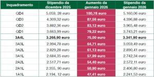 inquadramento e l’ammontare della voce stipendio a partire da gennaio 2026 👇